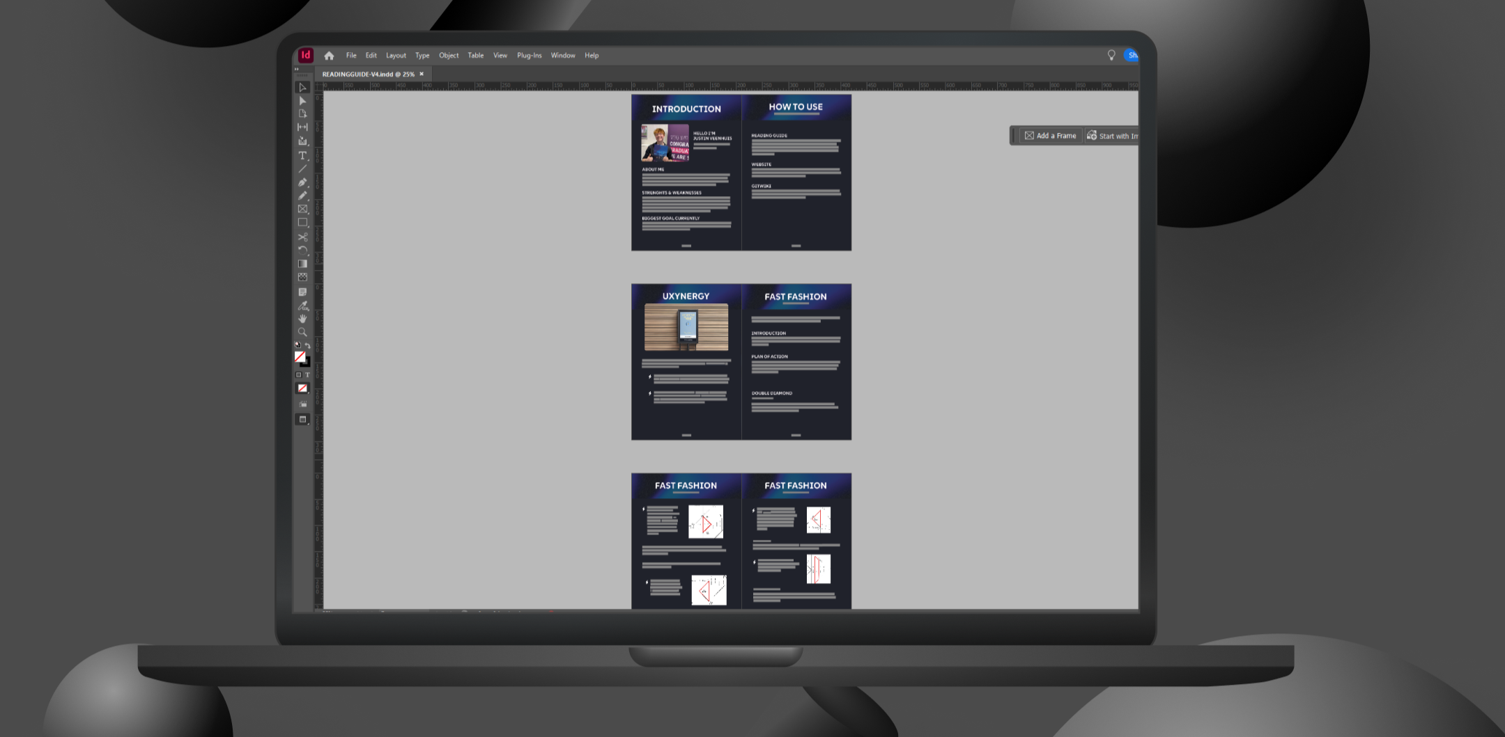 I got feedback from Josh that using Figma to create my reading guide was not good. It was hard to navigate trough since it was a one-page. I agreed with his feedback and I decided to recreate it in Adobe Indesign.