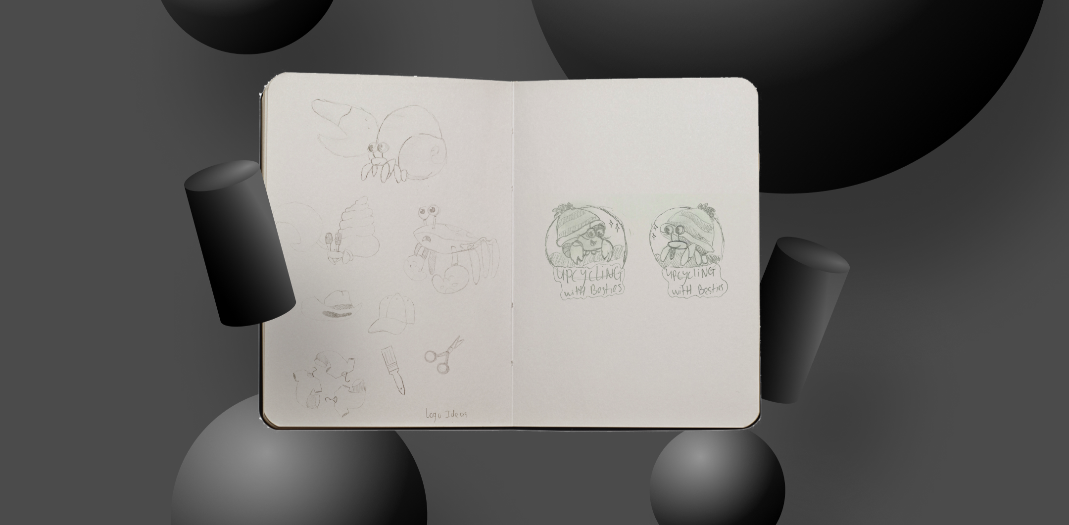 It was my task to create a logo for our game. I went looking for inspiration and I searched on the web which animal represents upcycling and a hermitcrab came out on top. I tought it would be fun to have the crab have a clothing piece as a shell since we have a upcycling game with clothes. I used AI for inspiration, made a moodboard, sketched, did an A/B test and made it in Illustrator.